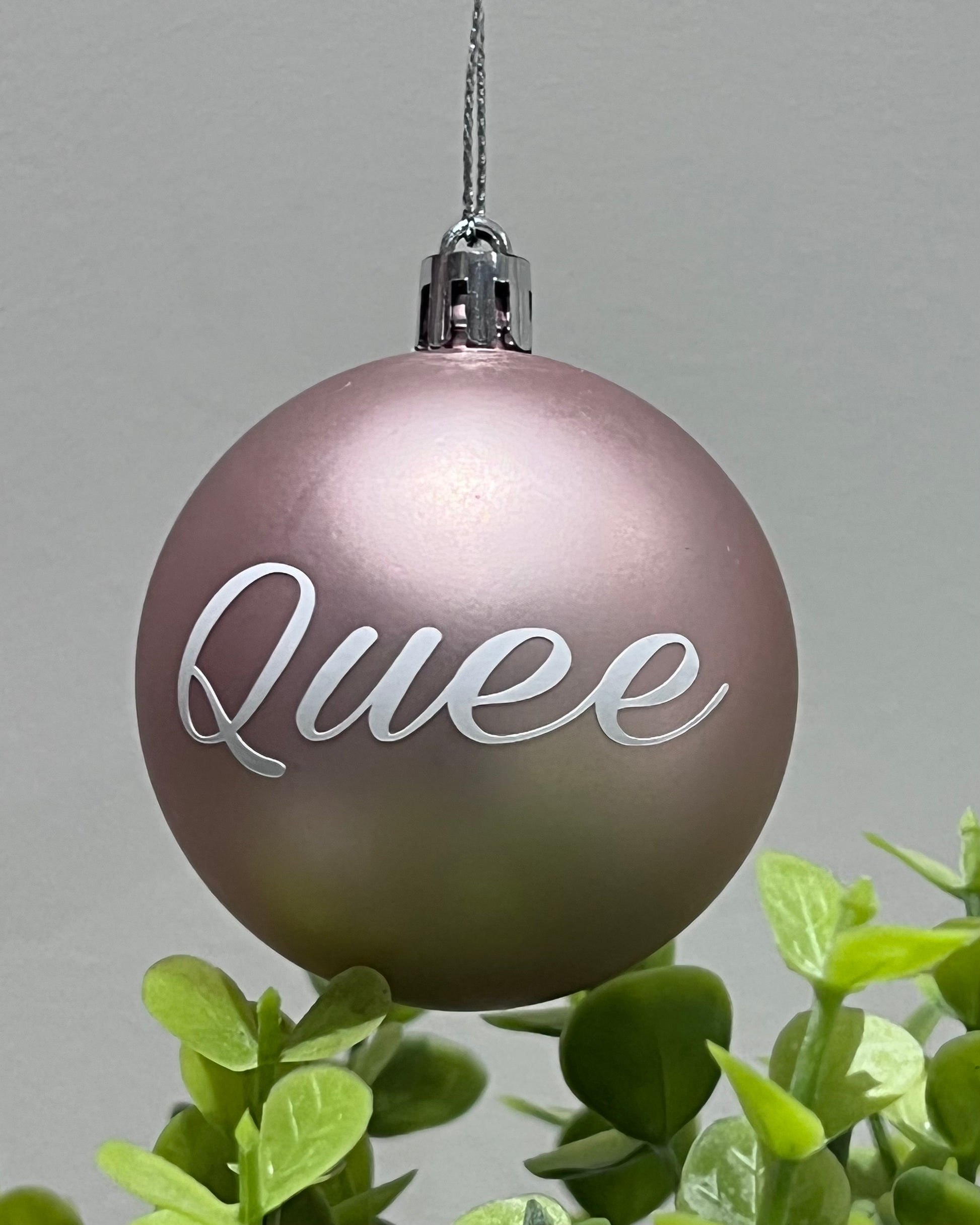 These personalized Christmas Baubles are PVC and measure 8 cm in diameter, they are available in Rose Gold and Silver. Personalization is name only with a character limit of 7 characters. The name text will appear in white.